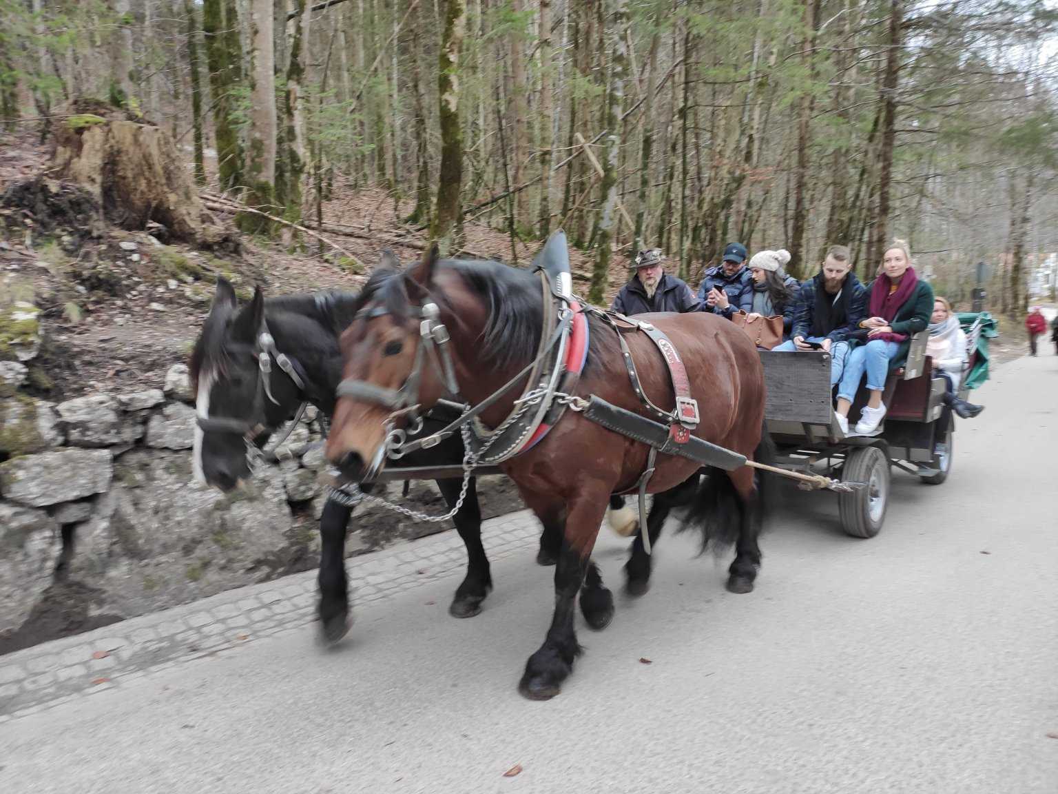 Виктор ждал нас у выхода. Спускаться вниз было предложено кто как хочет. В нашей группе были две женщины в возрасте, которые поехали на конной повозке. Мы пошли пешком вместе с гидом. Воспользовавшись случаем, я посоветовалась с ним насчет ресторана в Мюнхене, в который мы потом сходили на ужин.