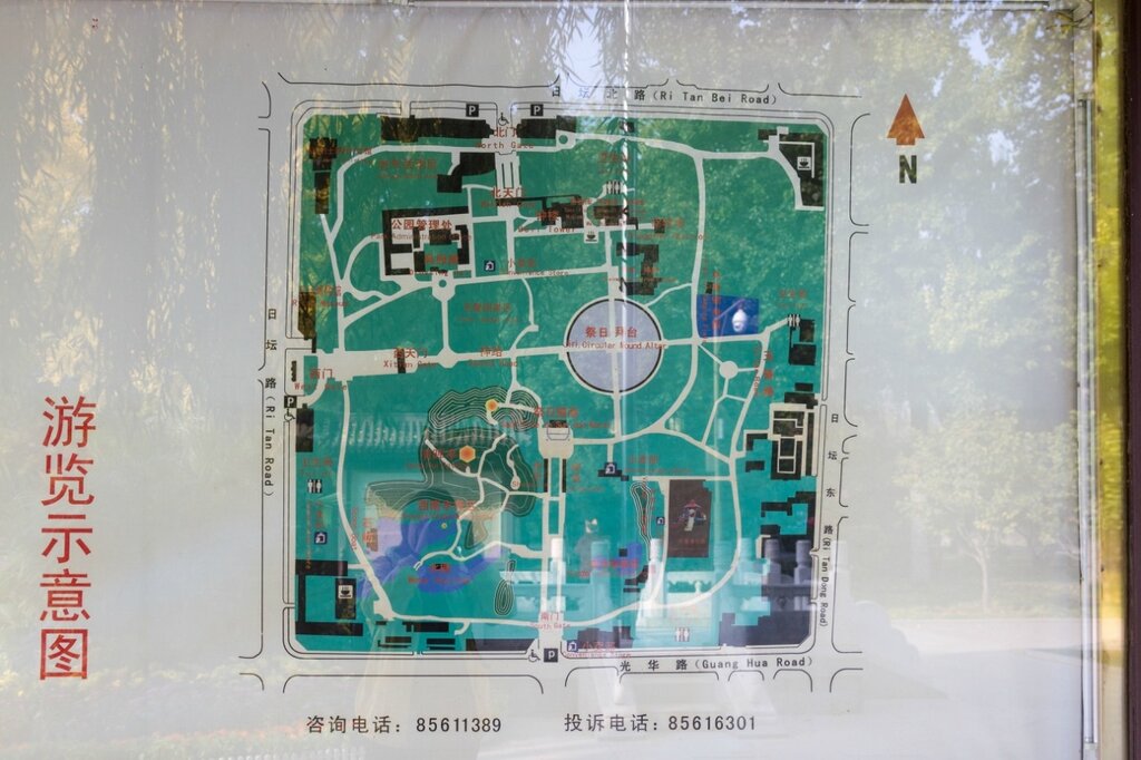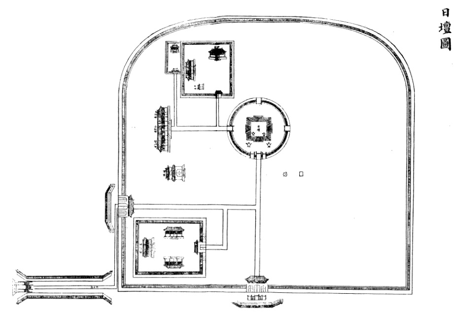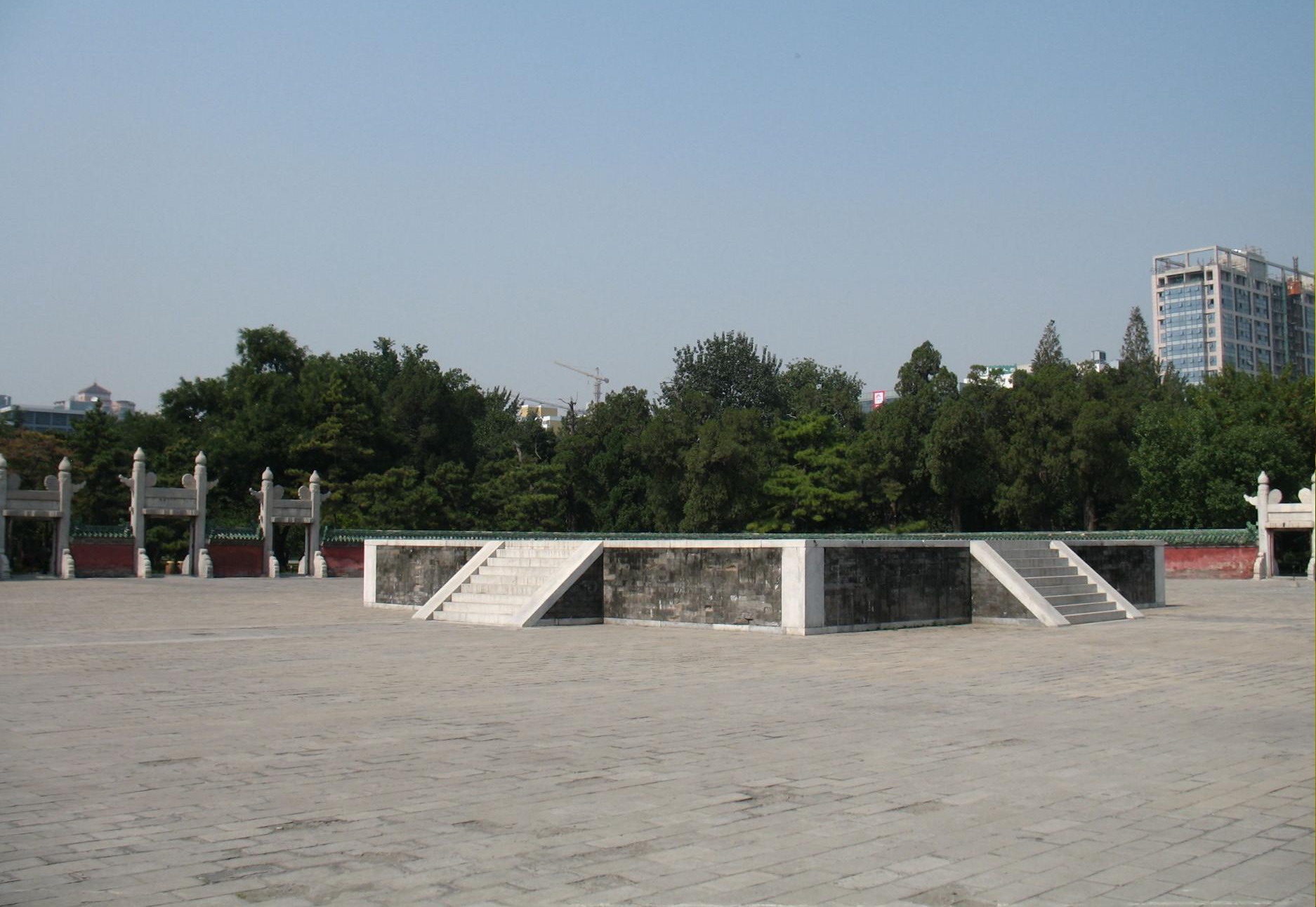 К западу от Запретного города в районе Фучэнмэнь, был устроен Алтарь Луны 月坛 юэтань. На севере — Алтарь Земли 地坛 дитань, на юге остался Алтарь Неба 天坛 тяньтань, а в центре поместили Алтарь Земли и Злаков 社稷坛 шэдитань. Алтарь Земли и Злаков находился внутри стен Внутреннего города, Храм Неба — во Внешнем городе, а три остальные алтаря — Солнца, Земли и Луны — за пределами крепостных стен.
