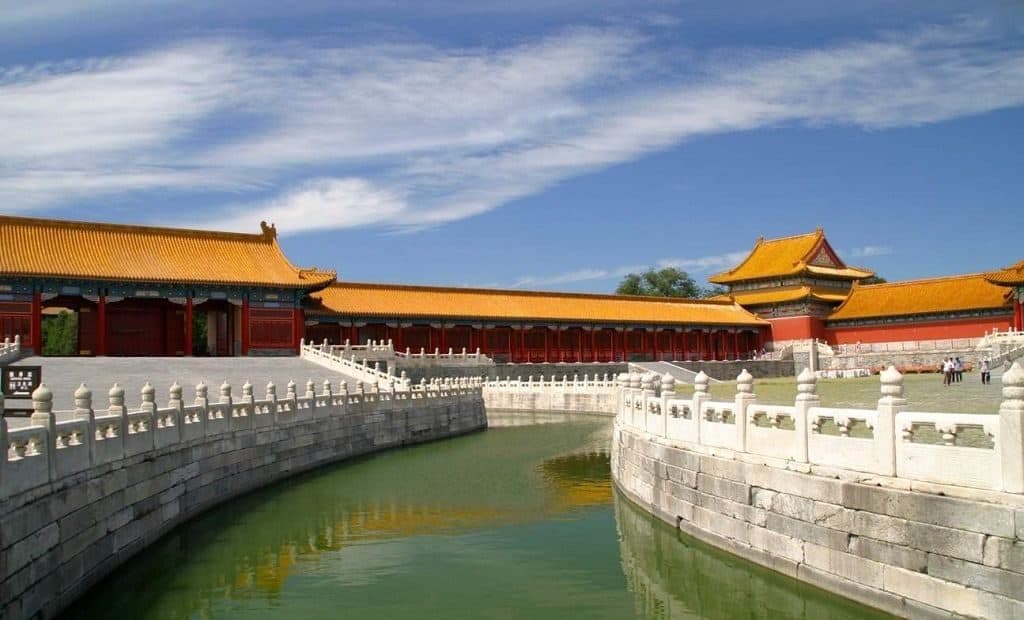 Сам Запретный город начинается за Полуденными воротами. На огромной площади всегда много людей: одни отдыхают, другие только готовятся к путешествию. Пройдя по мостику через Золотую воду, турист видит перед собой Ворота Высшей Гармонии. Минуя их, перед изумленным взором раскидывается еще одна, поистине гигантская площадь, на которой в прежние века проводились воинские построения. Пройдя еще пару километров можно достичь зала Высшей Гармонии.
