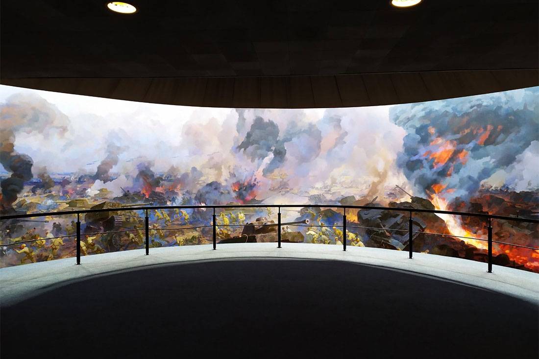 Диорама «Огненная дуга» считается самой крупной в Европе. Это цельнотканый холст длиной 67 м и высотой 15 м, на котором изображено танковое сражение под деревней Прохоровкой. С высоты более 200 м можно увидеть момент решающей схватки на Курской дуге, происходившей 12 июля 1943 года. Ощутить атмосферу напряженного боя помогает звуковое сопровождение – крики солдат, грохот взрывающихся бомб и голос диктора Левитана.