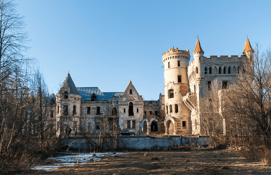 Недалеко от города Владимир располагается самая красивая и необычная заброшка данного региона – старый замок девятнадцатого века, выполненный на средневековый манер, который так нетипичен для русской архитектуры.