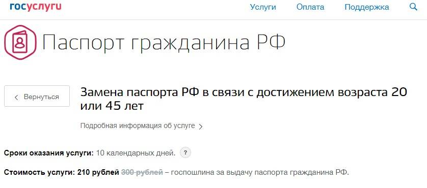 При замене паспорта в 45 лет, сроки назначаются со времени достижения данного возраста. Отсчет начинается со дня рождения, документ теряет статус действительного, во избежание штрафа гражданину предоставляется месяц на его обмен. Просрочка удостоверения означает его недееспособность и непригодность в дальнейшем для оформления соглашений, контрактов, договоров и другой документации, требующей персонализации. По закону сроки рассмотрения заявок не должны превышать 30 дней.Для освидетельствования личности в период, требуемый для обновления, заявитель вправе потребовать временное удостоверение, которое можно использовать для вышеуказанных и иных целей, не противоречащих закону. Такая бумага выдается в ГУВМ или МФЦ.Обмен становится возможным после уплаты пошлины и предоставления полного комплекта бланков.