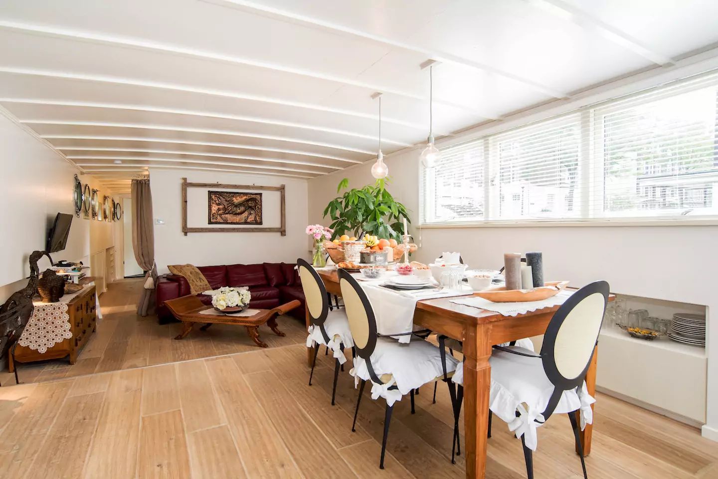О ценах. Не удивляйтесь заоблачным ценам — это Амстердам, и жилье тут стоит очень дорого. В центре или близко к нему арендовать дом на воде (houseboat) можно примерно от 150 евро в сутки — это настоящие плавучие дома с красивым продуманным интерьером и всеми удобствами. А вот скромные лодки со спартанскими условиями стоят от 40 евро — и не всегда в них есть базовые удобства типа душа.