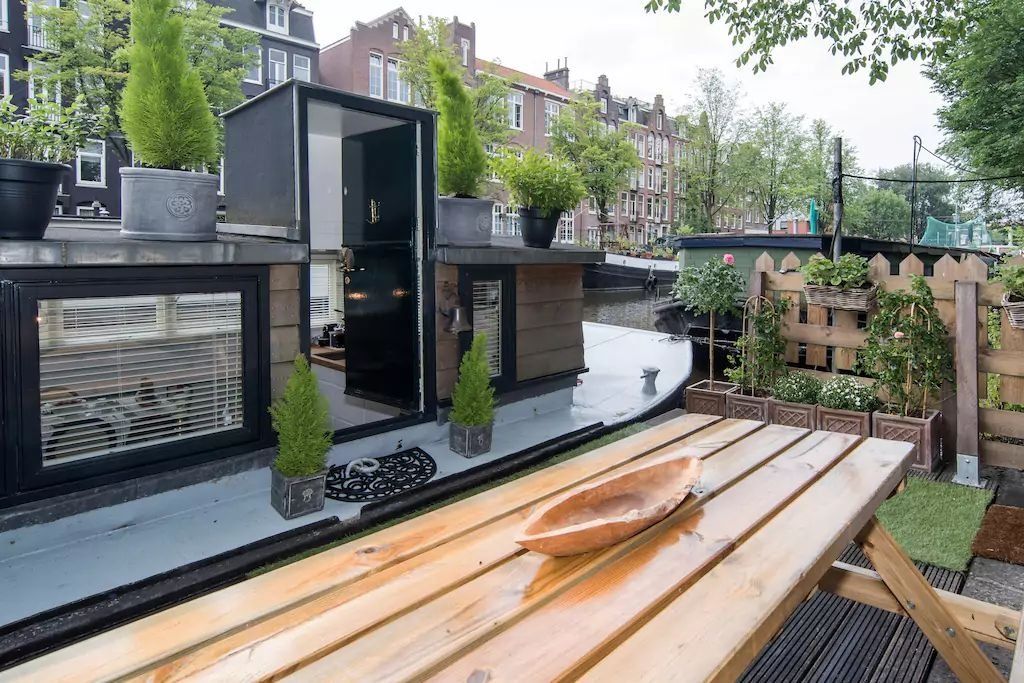 Снаружи — на верхней палубе можно насладиться прекрасным видом на город. Добрые хозяева предлагают в аренду велосипеды для прогулки по Амстердаму, помогают с поиском необычных мест, не указанных в путеводителях.
