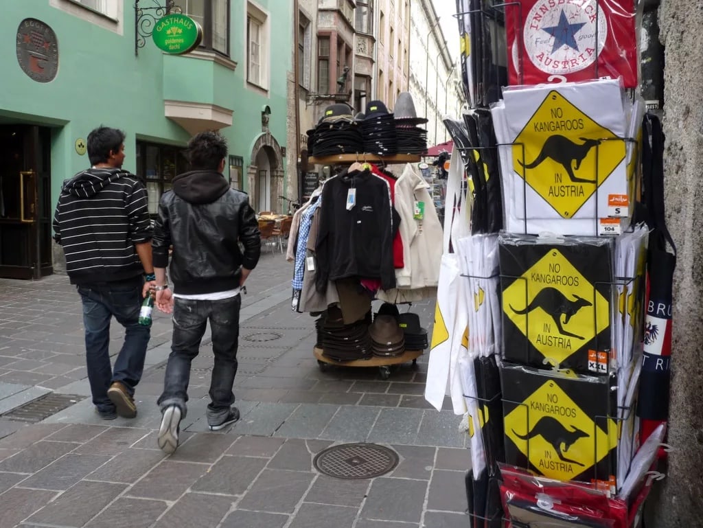 Из-за того, что туристы часто путают Австрию с Австралией, в стране даже появился слоган: «В Австрии нет кенгуру!» Известно, что эти сумчатые животные обитают в Австралии. Австрийцы уже привыкли объяснять приезжим, что увидеть этих экзотических животных в их стране не получится, поэтому было решено запустить линию забавных футболок, на которых красуется данный слоган.